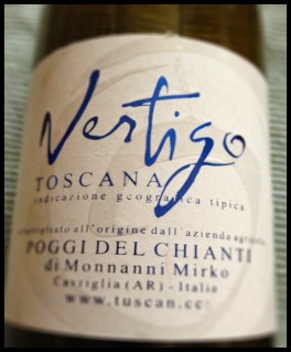 Mi agradecimiento a los responsables de la bodega italiana Poggi del Chianti, por su desinteresado envio de muestras, al objeto de mi cata y análisis. Este vino blanco en edición de añada 2012, bautizado con el nombre Vertigo; está elaborado en base a una fusión varietal de las uvas trebbiano toscano y malvasía blanca lunga del Chianti. Es un vino fresco, que aporta buena consistencia frutal, no excesivo en cuanto a complejidad, que aporta en copa parada un color amarillo pajizo con algunos reflejos dorados. La nariz tiene evocaciones aromáticas de manzana y limón, con ligeros detalles de flores blancas y amarillas. No mucho más. A la aparente simpleza del vino, haciendo caso a su expresión de fragancia, la boca se abre con mayor resolución, buen punto de dulzor, carnosidad en el avance, media alta seña de acidez, envolvencia. A una textura medio untuosa, suceden los recuerdos de la retronasal, que son de fruta cítrica y blanca sin hueso, acacia y hierba fresca, con un punto de melosidad no demasiado intensa, finalizando ensalzando aún en mayor medida su personalidad frutal. Lo califico en esta añada 2012 como recomendable.